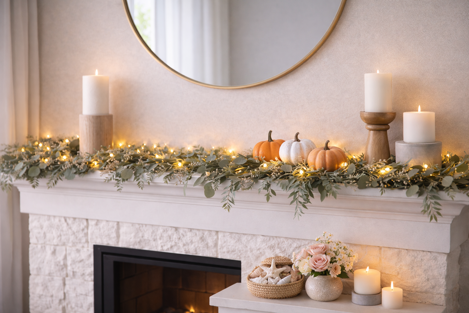 Use festive colors and layered light for Christmas, fall, and celebrations.