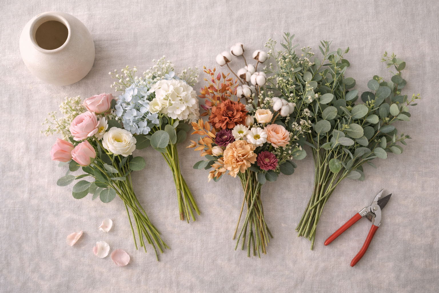 Example cost comparison: If you buy a $60 fresh bouquet every month, that’s over $700 a year. That same amount invested once in high-quality silk stems can create multiple arrangements you reuse for years.