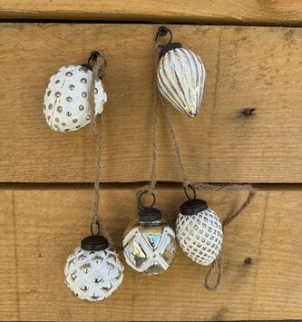 Enhance your holiday décor with the timeless elegance of the Mini Mercury Glass White Ornament, available in five unique styles. These exquisite ornaments bring a touch of vintage charm and modern sophistication to your Christmas tree