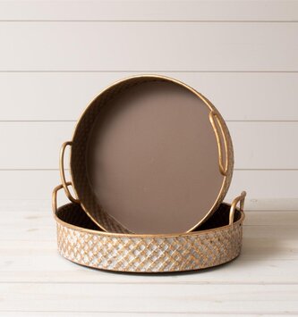 Round Embossed Gold & White Lattice Tray (2-Sizes)
